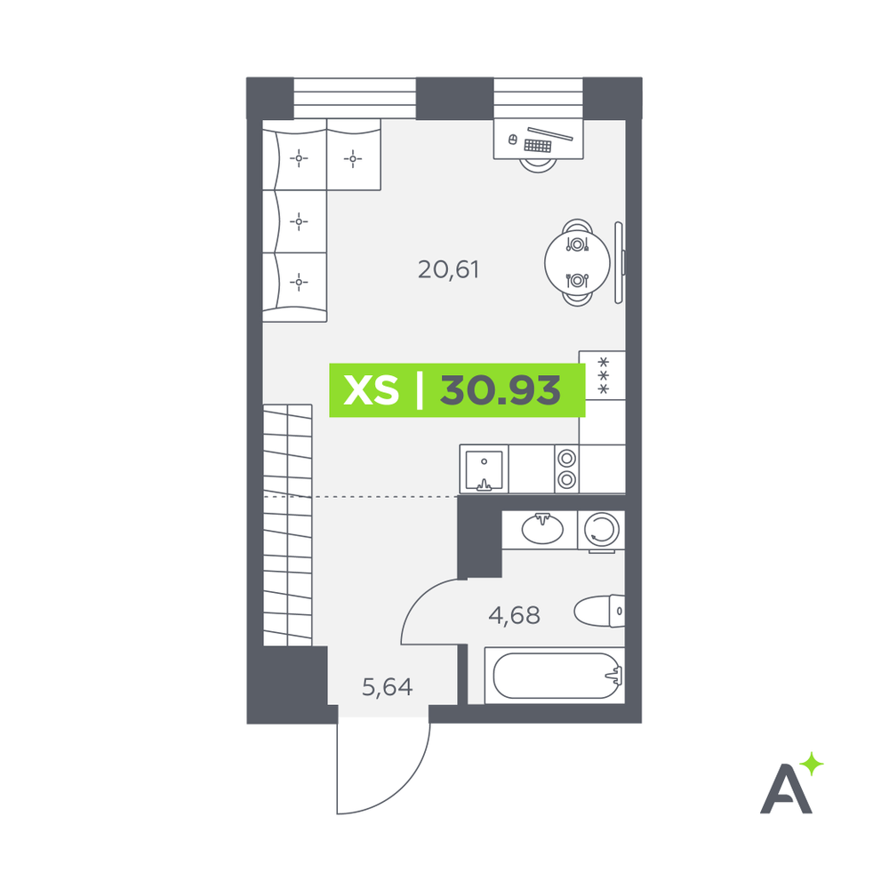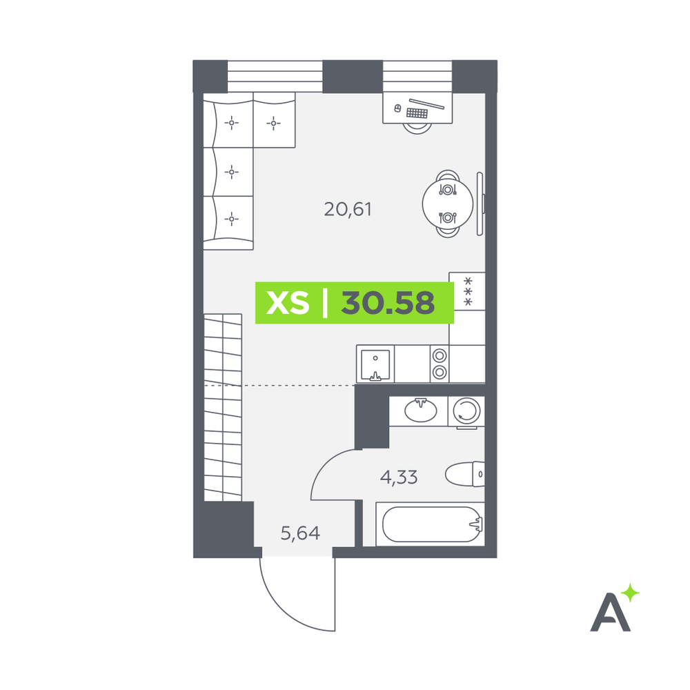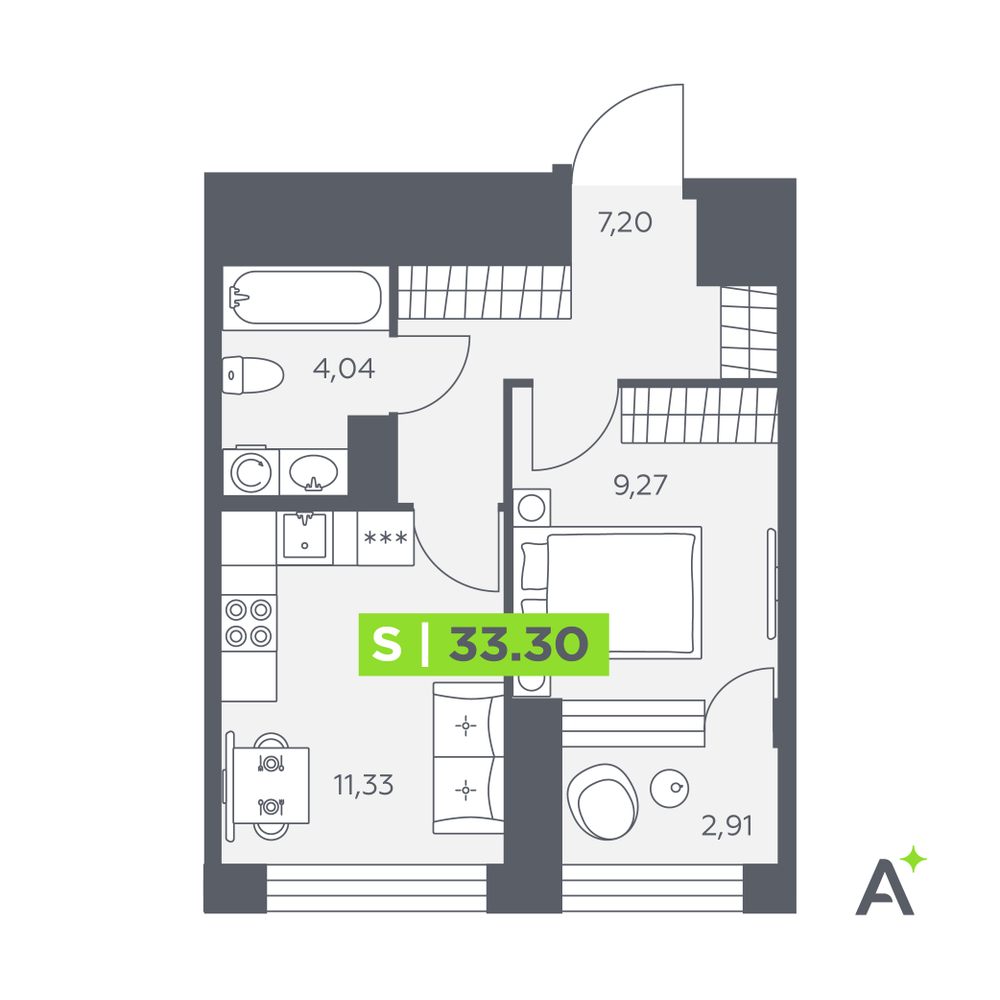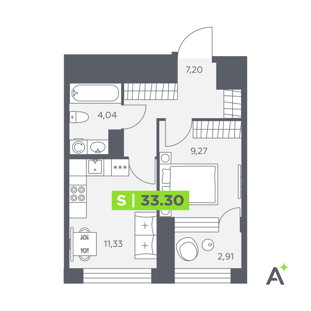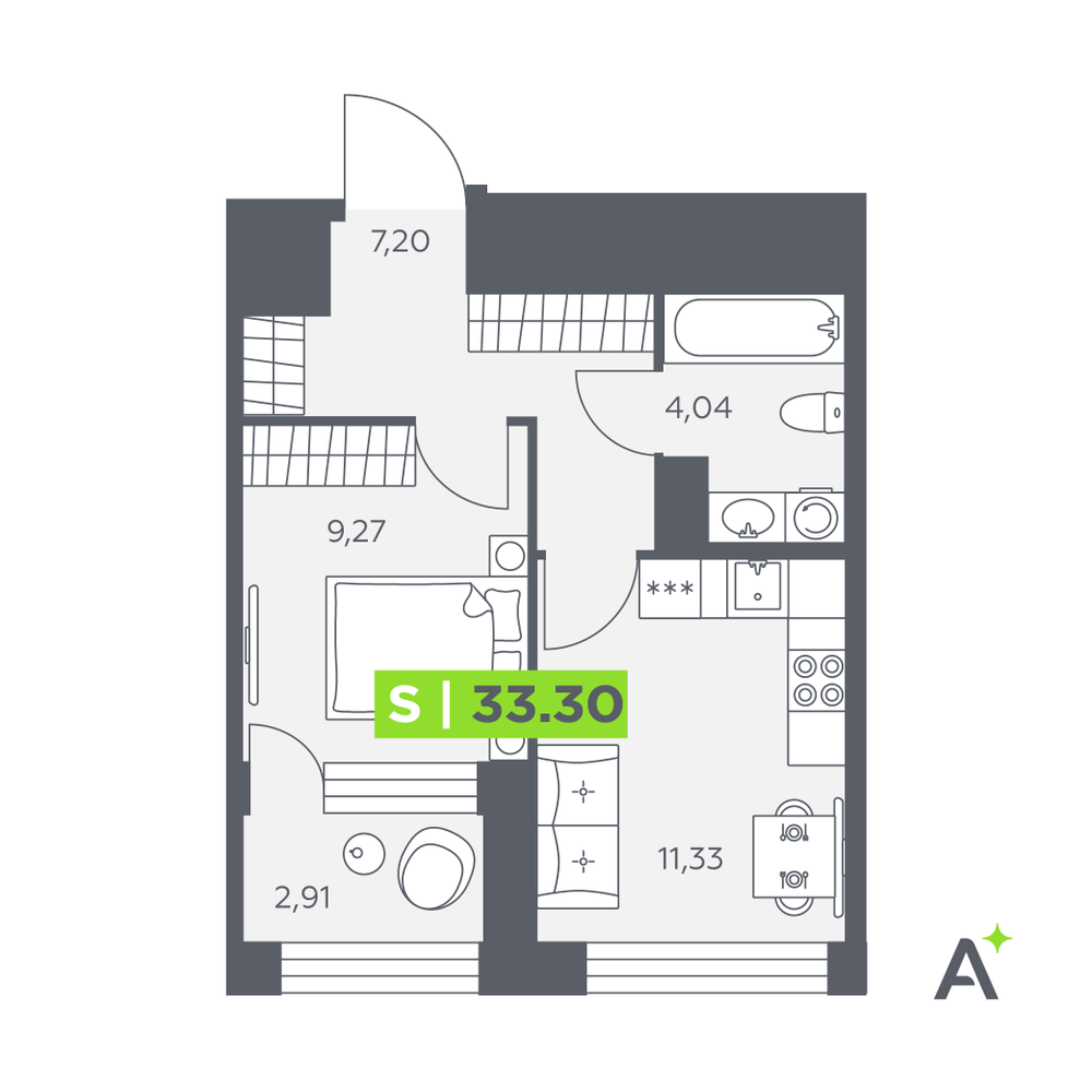 1-комнатная  33.3 м2