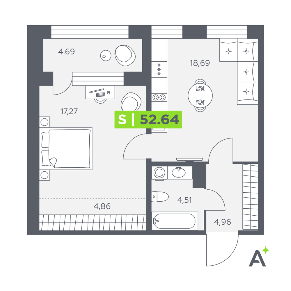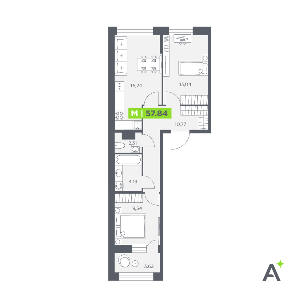 2-комнатная  58.47 м2