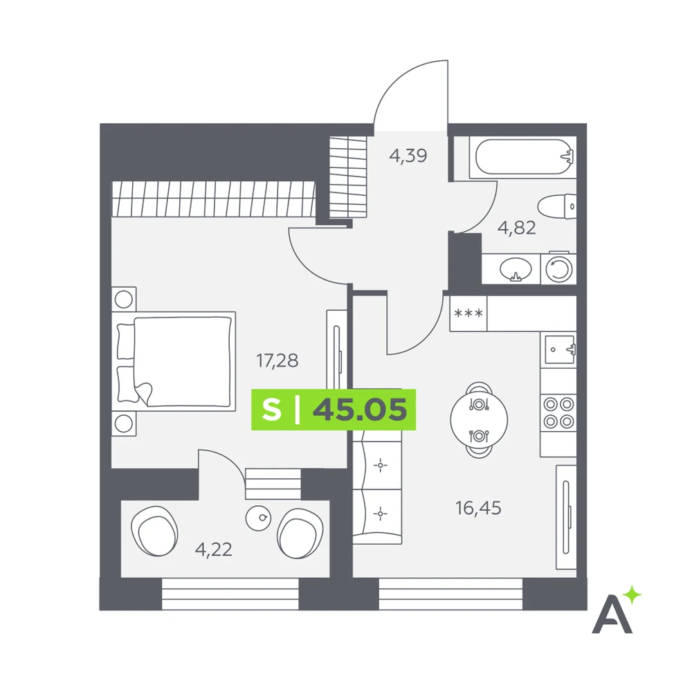 2-комнатная  50.07 м2