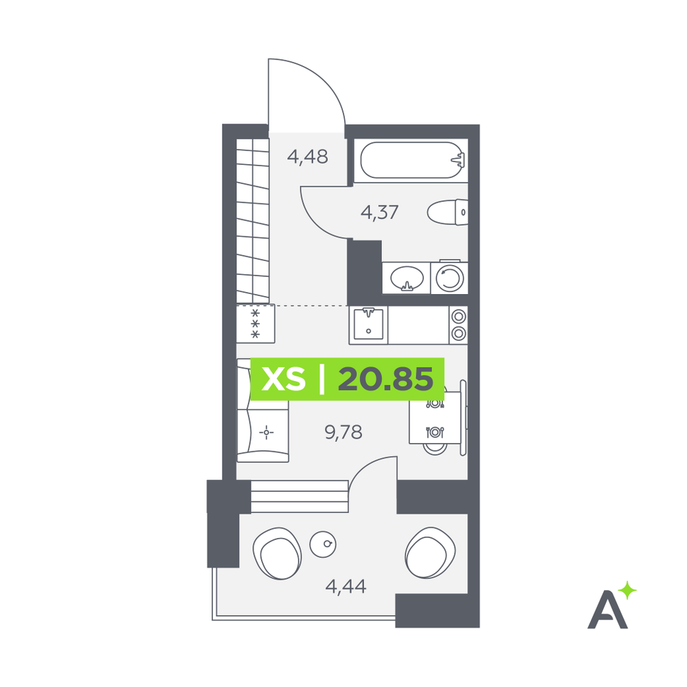 Студия 21.4 м2