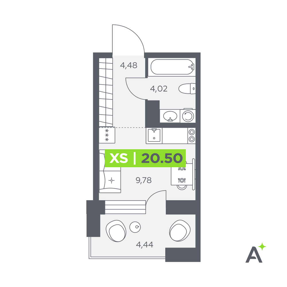 Студия  21.4 м2