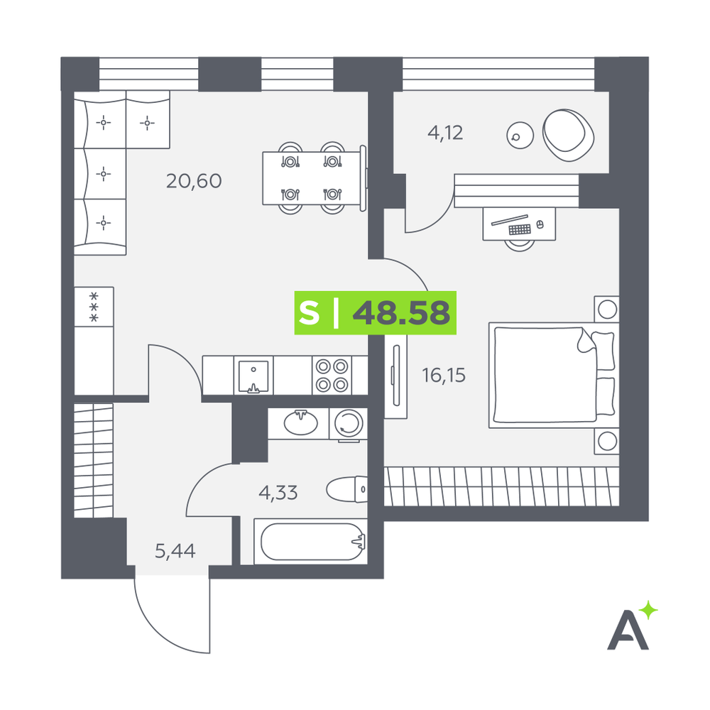2-комнатная  53.14 м2